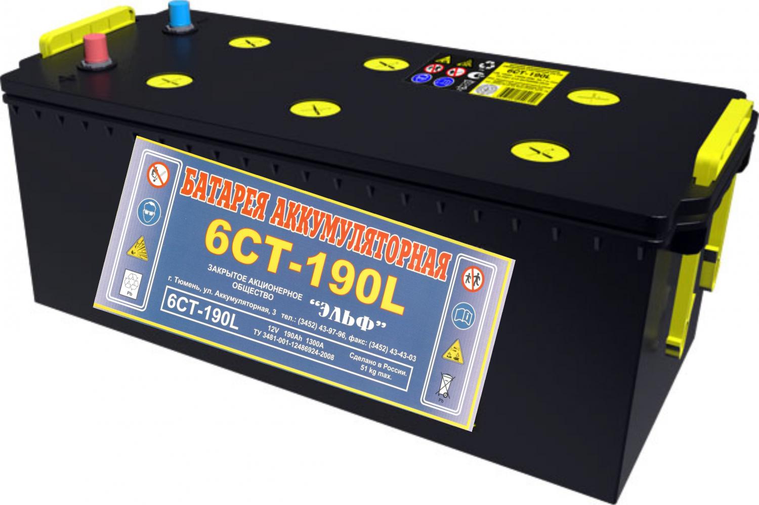 Автомобильный аккумулятор ЭЛЬФ 6ст-190L, 190Ач, 1300 EN, унив., прям.